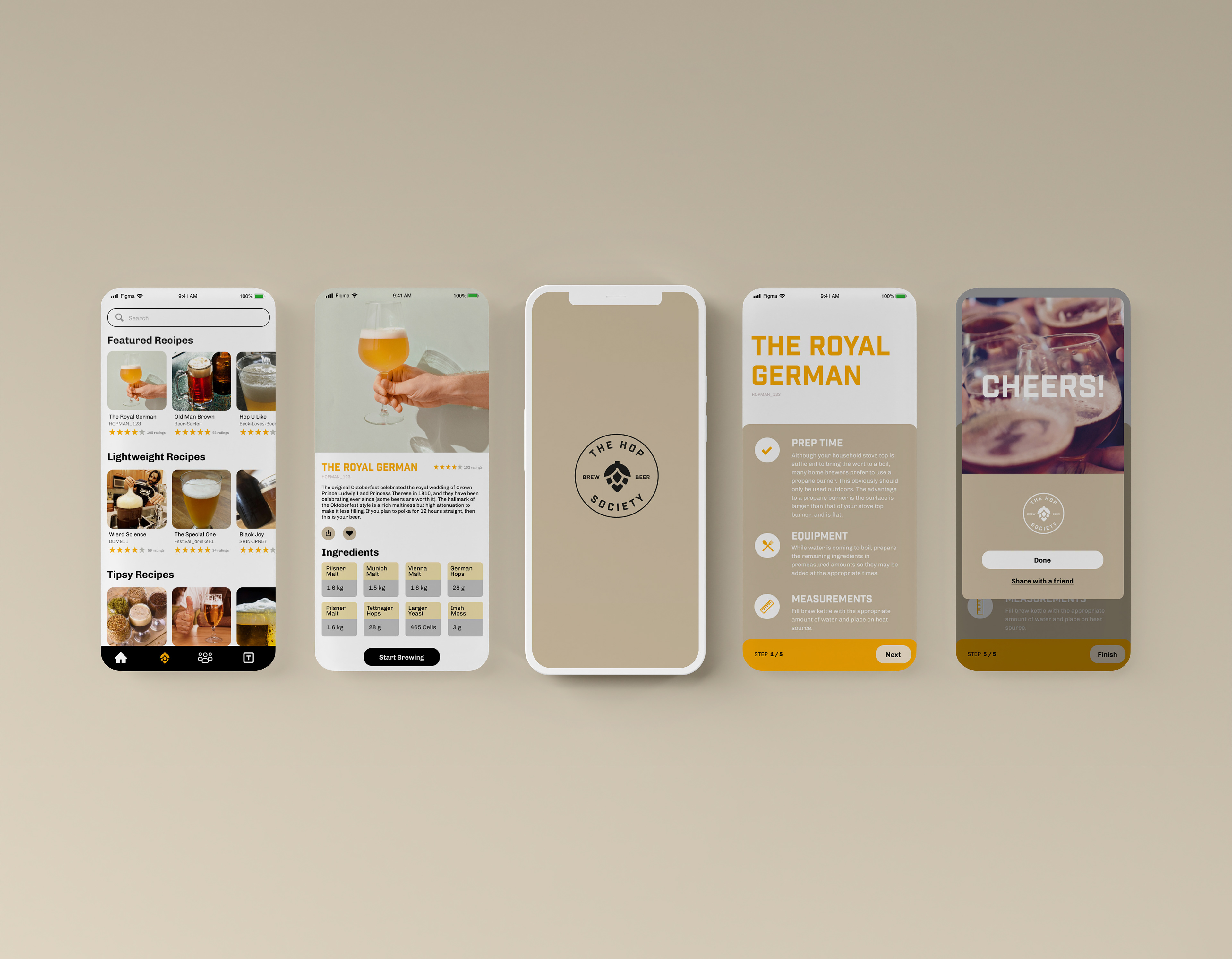 App and Brand for The Hop Society, a home brewing App for people of all abilities to share there love and knowledge of brewing beer.